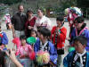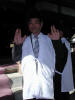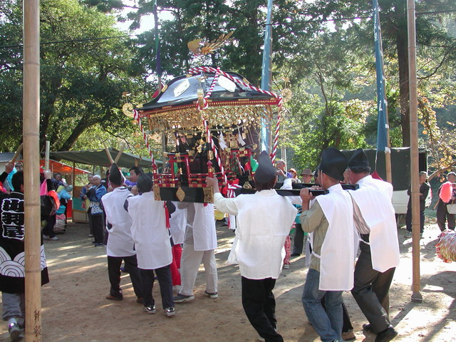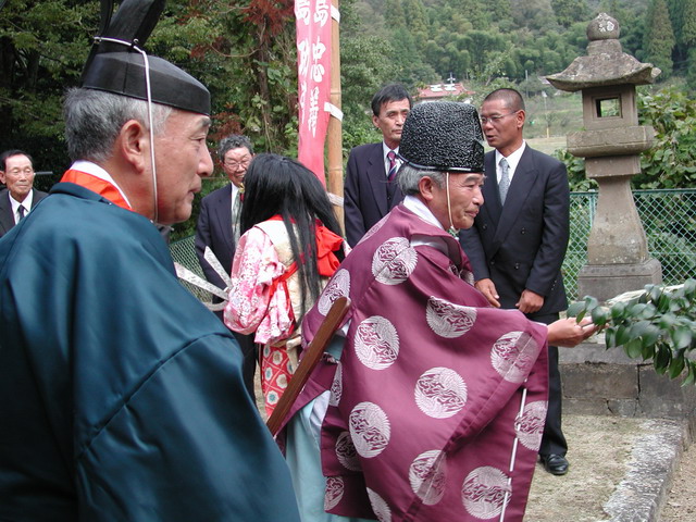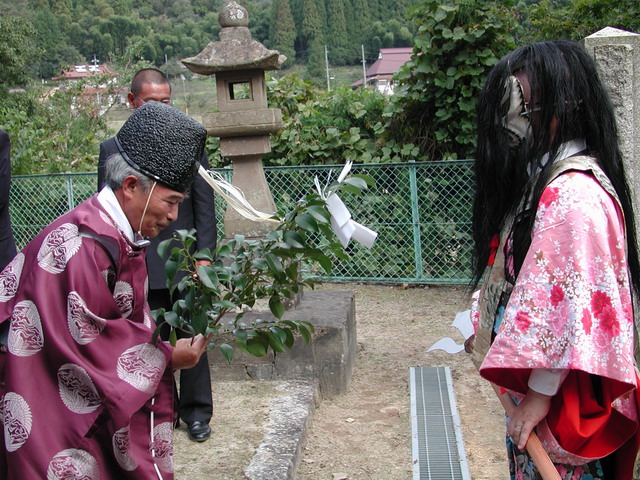 The shinto priests welcome the head of the parade, who just always happens to be an ogre...not sure why. |